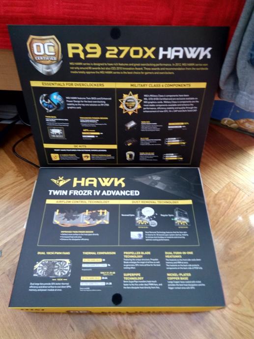 Prodajem MSI Radeon R9 270X HAWK grafičku karticu. Kartica je kupljena u 1. mjesecu 2014. i ima jamstvo 36 mjeseci znači do 2017. Kartica je odlična, radi na originalnim postavkama bez overclockiranja.Koristi se za igranje 4, 5 sati tjedno maksimalno, a često i manje.