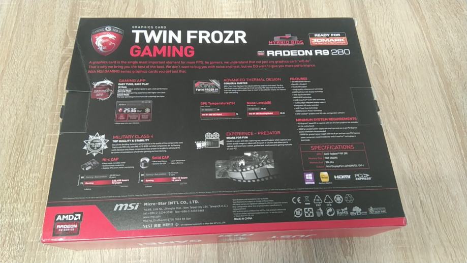 Prodajem grafičku karticu MSI RADEON R9 280 GAMING 3GB, kartica je u vrhunskom stanju (kao nova) , korištena samo par puta, stojala u kutiji godinu dana. Nikad clockana niti išta slično. Kartica radi ultra tiho, pokreće sve igrice novije bez problema. Kartica ima 3gb gddr5,
