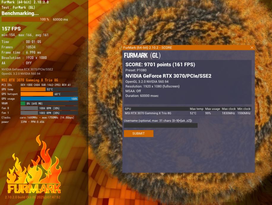 MSI RTX 3070 8GB GAMING X TRIO
