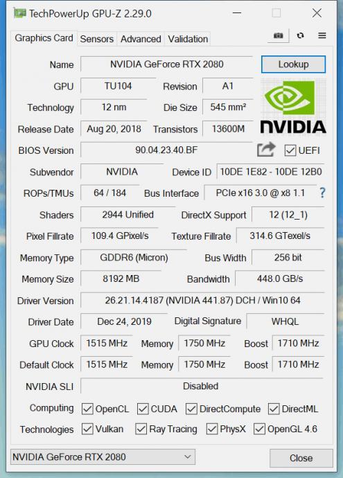 - GPU Clock: 1515 MHz, Memory: 1750 MHz, Boost: 1710 MHz