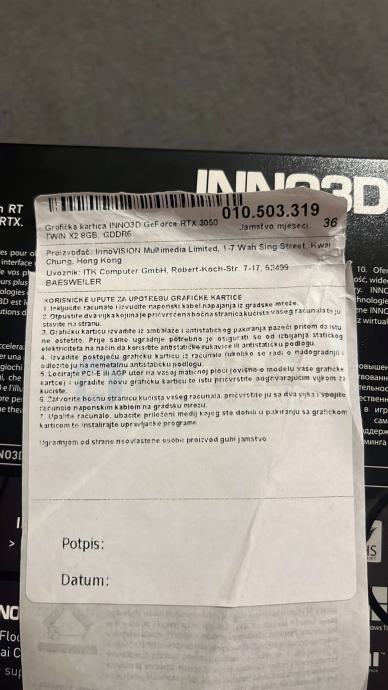 Prodajem grafičku karticu Inno3D Nvidia GeForce RTX 3050 TWIN X2 8GB GDDR6