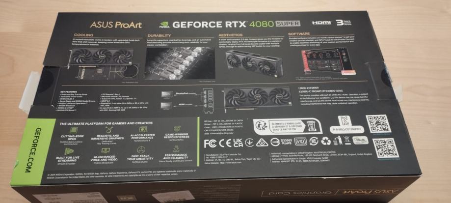 ASUS PROART GeForce RTX 4080 SUPER OC grafička kartica nudi izvanredne performanse za kreativne profesionalce. Opremljena NVIDIA GeForce RTX 4080 SUPER grafičkim procesorom, 16GB GDDR6X memorije i PCIe 4.0 x16 sučeljem, pruža vrhunske mogućnosti za rad s grafikom i igranje. Glavne značajke - NVIDIA Ada Lovelace arhitektura, do 2x performansi i energetske učinkovitosti, 3. generacija RT jezgri za poboljšano ray tracing, OC način rada do 2640 MHz. Prednosti za korisnika - Idealna za rad s AI-om, video editiranje i 3D modeliranje, podržava DirectX 12 Ultimate i OpenGL 4.6. Tehničke specifikacije - 16GB GDDR6X, 256-bitna memorijska sabirnica, brzina takta memorije 23000 MHz, 3x DisplayPort 1.4, 1x HDMI 2.1a, minimalni zahtjev napajanja 850W.