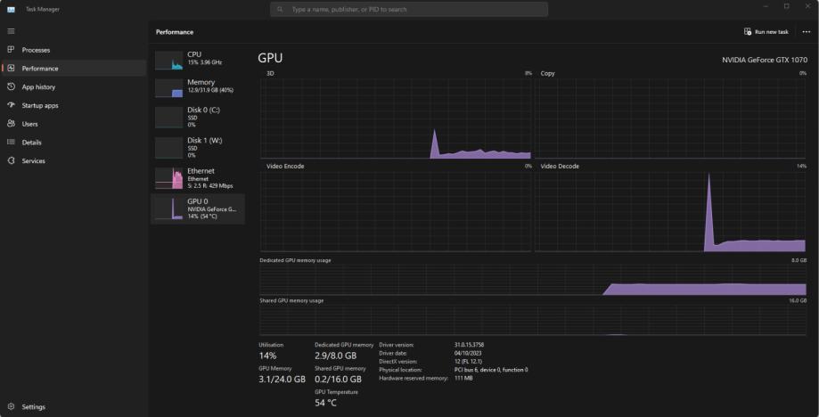 Prodaje se Nvidia GTX 1070 8GB. Grafička je ispravna te je izvađena jučer iz računala jer je kupljena nova grafička. Uredno je pokretala 2 ekrana (4k 60Hz i 2k 144Hz) bez ikakvih problema. Radi skoro pa nečujno. Ventilatori normalno rade bez ikakve buke. Nije prelazila preko 70° tokom igranaja igrica.