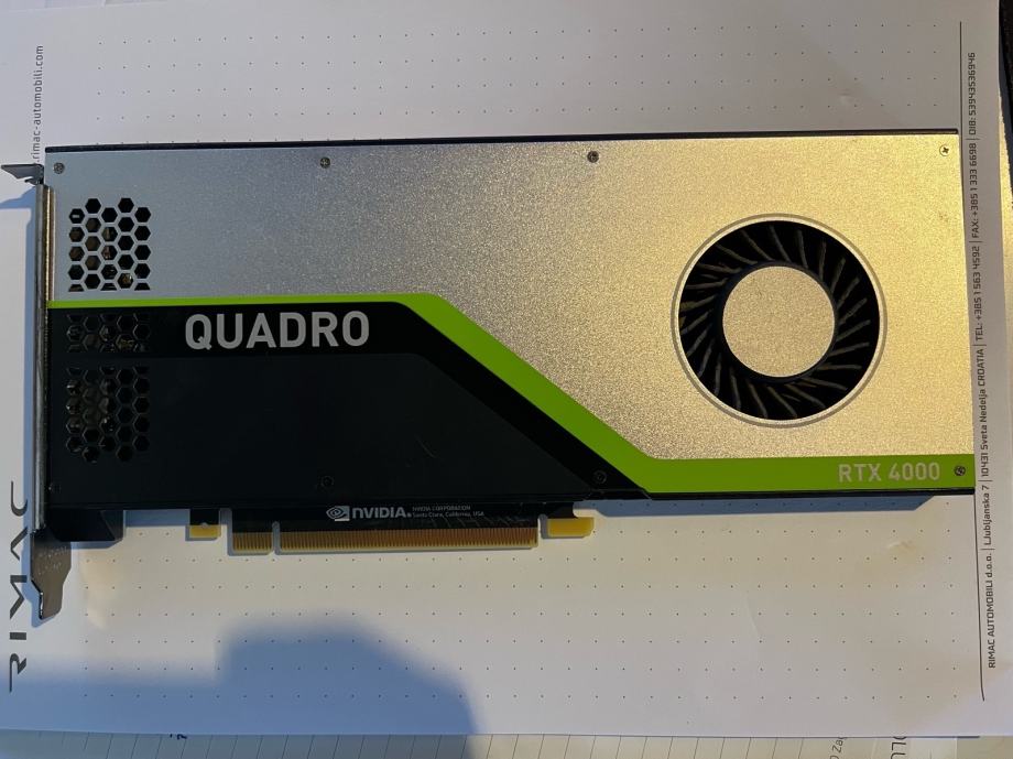 Prodaje se korištena nVidia Quadro RTX 4000, potpuno ispravna, izvađena iz računala. Viška mi je, nakon zamjene s jačom karticom.