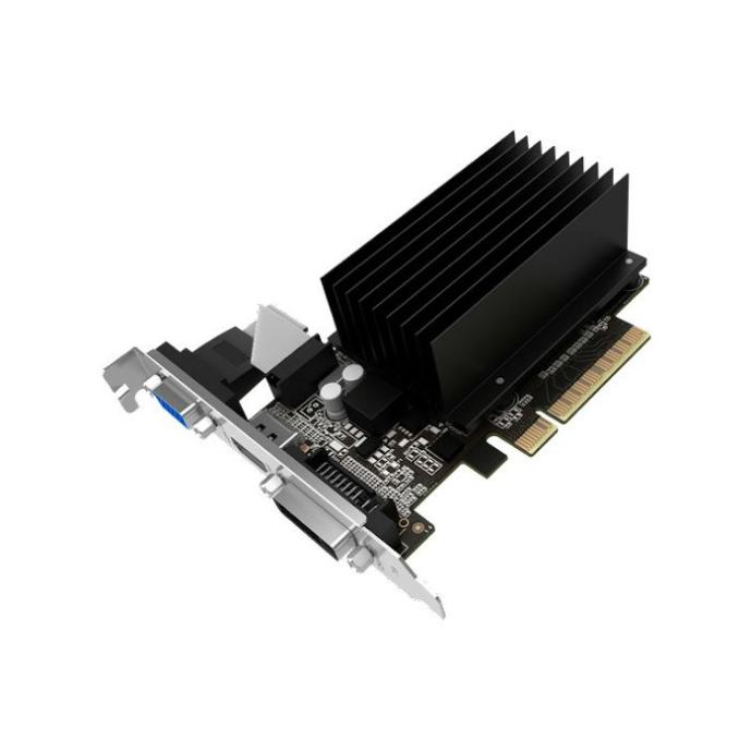 Chip: GK208 "Kepler" • Chip clock: 954MHz, Boost: not available • Memory: 2GB DDR3, 800MHz, 64bit, 12.8GB/s • Shader Units/TMUs/ROPs: 192/16/8 • computing power: 366GFLOPS (Single), 15GFLOPS (Double) • Manufacturing process: 28nm • Power consumption: 19W (TDP), not specified (idle) • DirectX: 11.0 • OpenGL: 4.5 • OpenCL: 1.2 • Vulkan: 1.0 • Shader model: 5.0 • Interface: PCIe 2.0 x8 • Total height: dual-slot • Cooling: passive • Connectors: VGA, DVI, HDMI 1.4 • external Power supply: not available • Dimensions: 115x69mm • Special features: low profile Design •