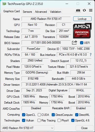 -Graphics Engine: AXRX 5700 XT 8GBD6-3DHE/OC