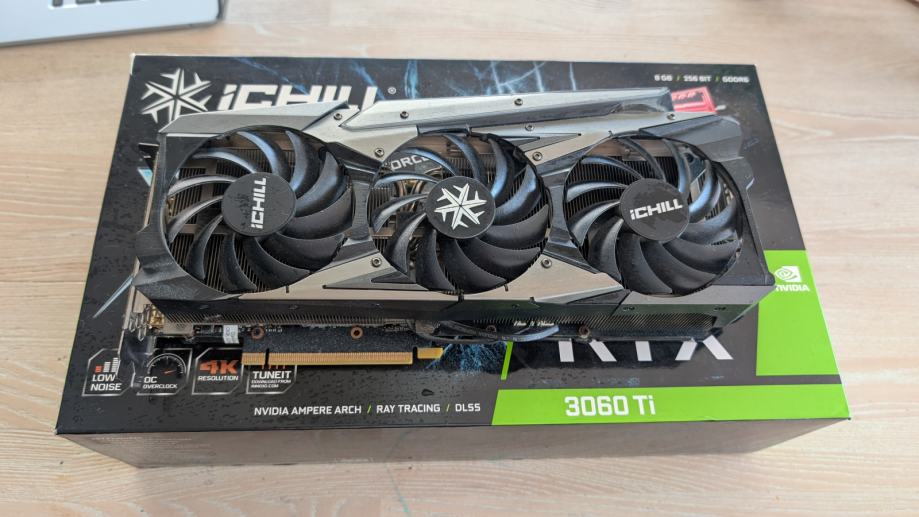 RTX 3060 Ti Inno3D ICHILL 8gb, vrhunsko stanje, original ambalaža, zaštitna naljepnica netaknuta. Cijena fiksna bez zamjena.