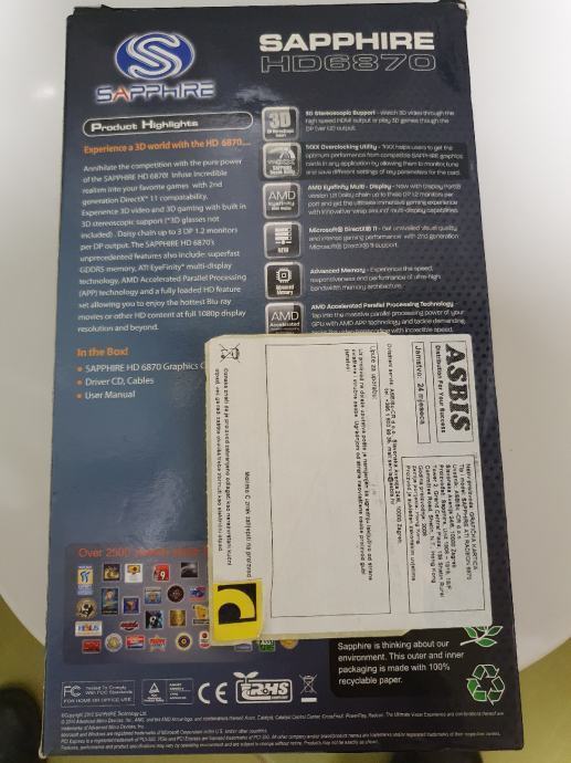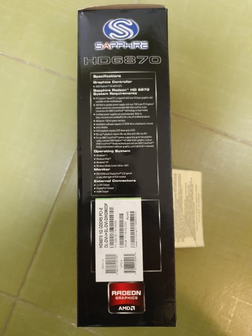 --SAPPHIRE Radeon HD 6870 1GB GDDR5 256-bit,(jača 9% od rx 550 4gb).,Windows 10 podržava.