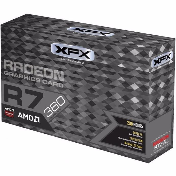 XFX R7 360 2GB DDR5 - R7-360P-2NF5 - 2GB XFX Radeon R7 360 Low Power Edition, 28nm, PCIe 3.0 (x16), 6000MHz GDDR5, 1070MHz GPU, 768 Streams, DP HDMI 2x DVI