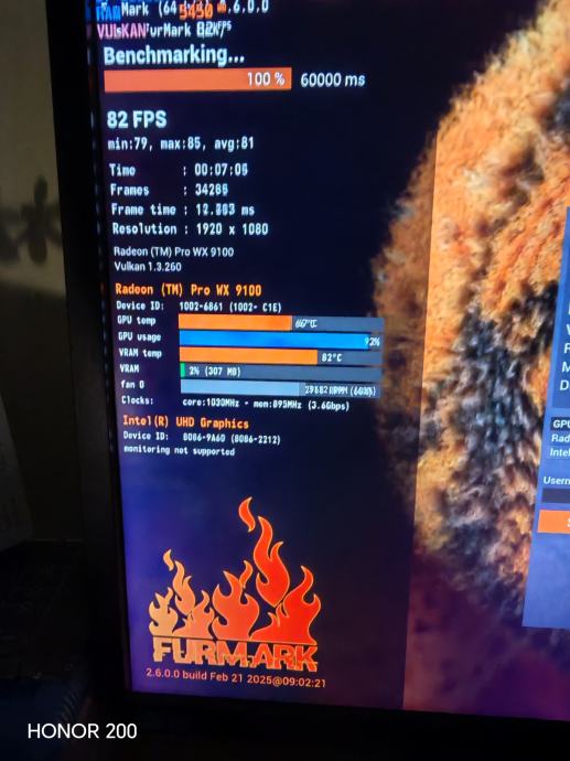 U igrama temperature su uredne i budu između 70 i 80 stupnjeva ovisi o postavkama a i zavisi kako postavite krivulju ventilatora napomena pošto ima blower ventilator u igrama zna biti dosta glasna jer se moze podesiti da ventilator ide i do skoro 5000o/m ja sam drzao max oko 2500 do 3000o/m te je bila na tim okretajima tiša. Kartica zahtjeva 8 i 6 pinsko dodatno napajanje te joj je max tdp 170w s tim biosom od wx9100 tako da treba i malo jace napajane za nju