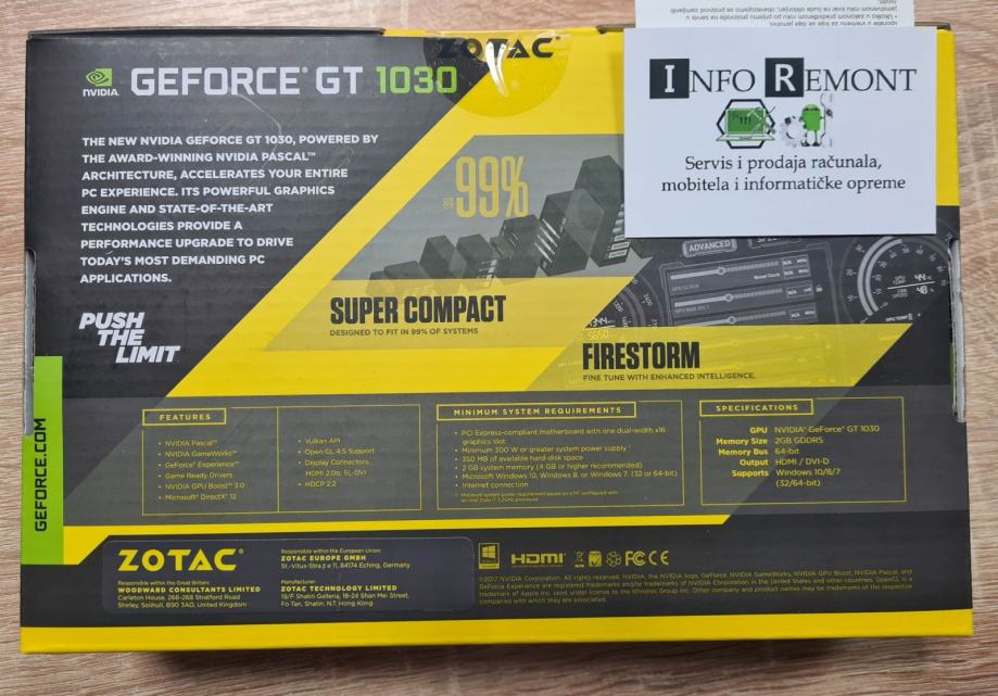 Grafička kartica ZOTAC NVIDIA GEFORCE 1030 2GB GDDR5