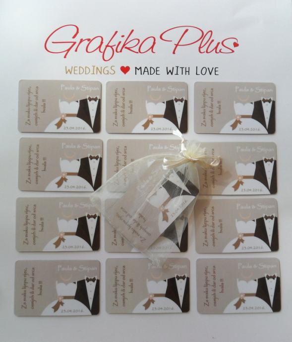 Dragi mladenci kod nas će te pronaći veliki izbor MAGNETNIH ZAHVALNICA s dizajnom osmišljenim prema vašim željama :)
