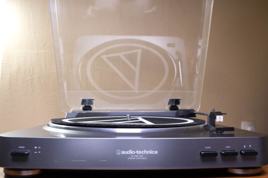 AT-LP60 idealan je gramofon za početnike i ljubitelje ploča. Radi se o automatskom gramofonu izrazito dobre kvalitete s obzirom na cijenu! Reproducira 33-1/3 i 45 RPM ploče. Zbog ugrađenog phono pretpojačala može se spojiti direktno na aktivne zvučnike, vaš kućni stereo ili liniju, bez potrebe kupnje pojačala ili receivera. Jedino što plastični poklopac ima nekoliko ogrebotina (kozmetička stvar, ne utječe na rad). Gramofon više ne koristim, zato ga i prodajem.