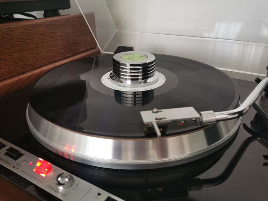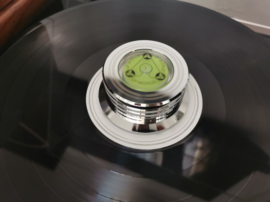 BMK AUDIO CL11 uteg (clamp) u krom sjajnoj izvedbi sa ugrađenom libelom centriranom u točnom središtu osovine vašeg gramofona.