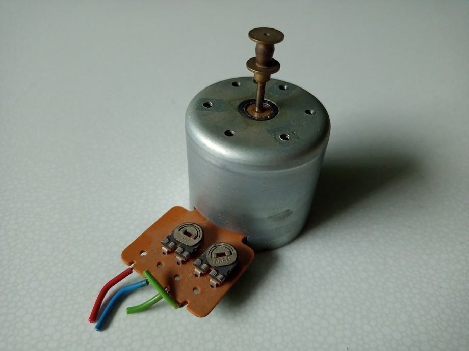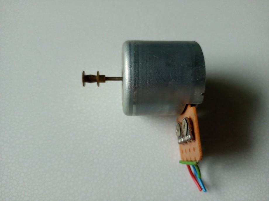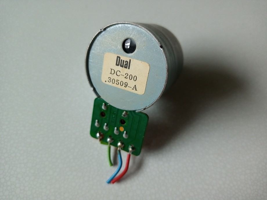 Prodajem ispravan motor Dual DC-200 (Sankyo 30509-A), skinut sa gramofonske jedinice Dual ASP 125 Automatik 760, koja je bila sastavni dio ormarića za hi-fi komponente Grundig CT 4300-2. Radi pri naponu 12 V istosmjerne struje, vrti se u smjeru kretanja kazaljke sata (CW, clockwise). Na njemu postoji potenciometar za podešavanje brzine, a na pločici još dodatna dva potenciometra. Promjer oklopa je 38.5 mm, visina oklopa 35.5 mm, promjer osovine 2 mm, a promjer mjedene koloture na mjestu gdje naliježe remen 4.39 mm.
