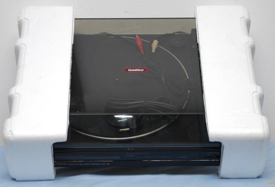 Prodajem potpuno novi/nekorišteni gramofon Južno Korejske proizvodnje marke Goldstar model GSP-309. Gramofon ima dvije brzine vrtnje tajnura - 33 i 45 okr./min. Na kraju odsvirane ploče ručica gramofona se vraća u početni položaj i vrtnja tanjura se isključuje. U gramofon je tvornički ugrađena vrlo kvalitetna zvučnica s iglom japanske marke Audio Technica. Gramofon dolazi u originalnoj ambalaži uz upute za uporabu.