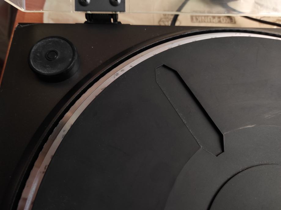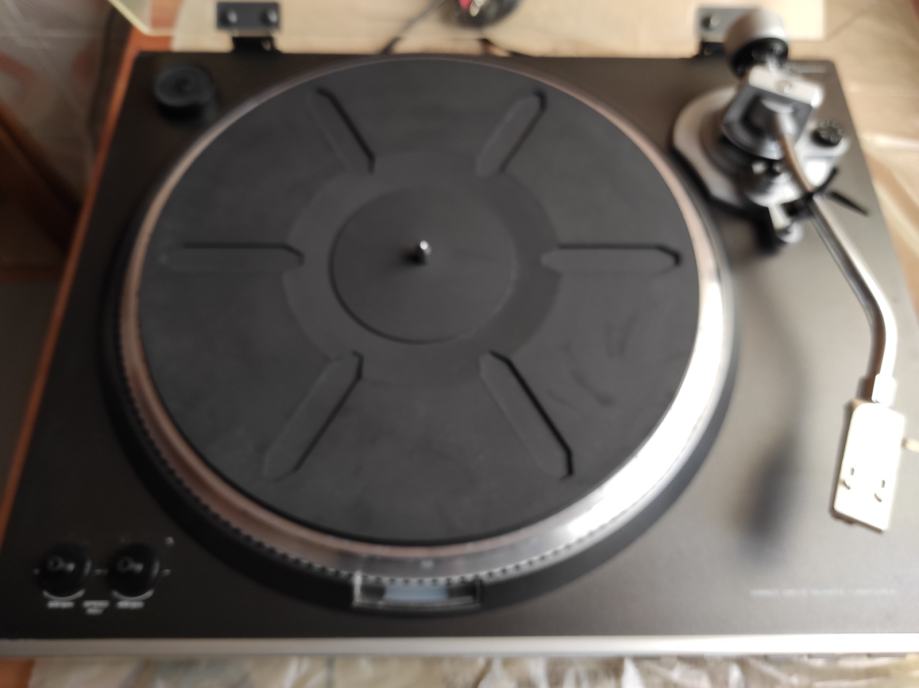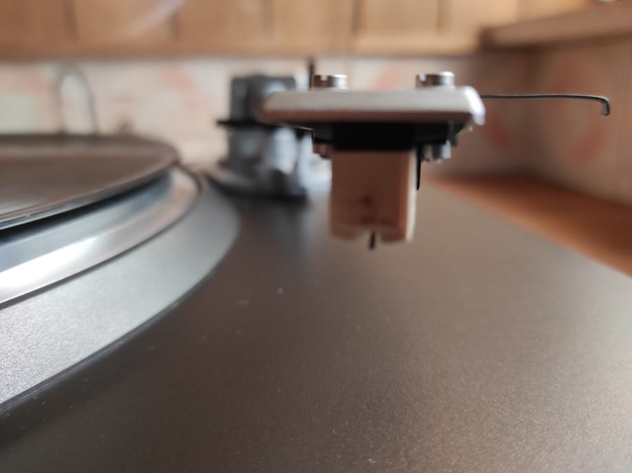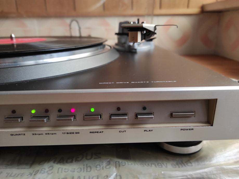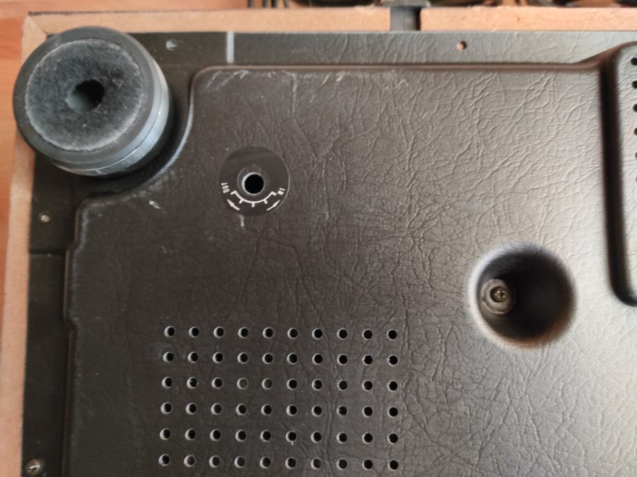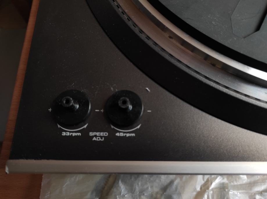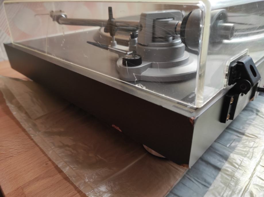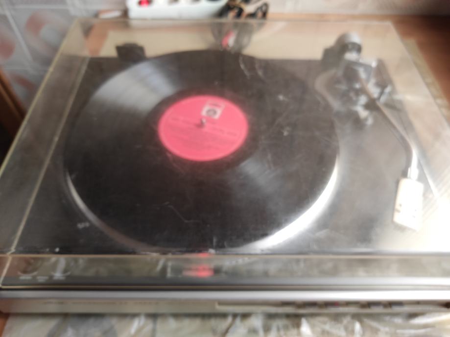 Gramofon je, u biti ,ispravan, ALI ga definitivno treba podmazati i poštelati. Godine nekorištenja su učinile svoje.