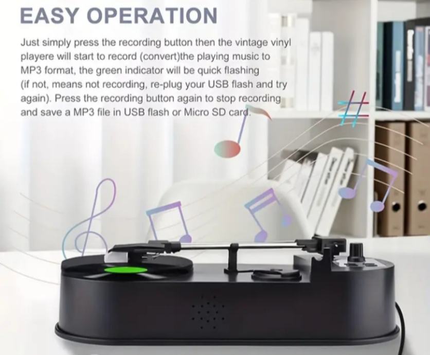 Gramofon mini, prijenosni, ujedno mp3 snimač