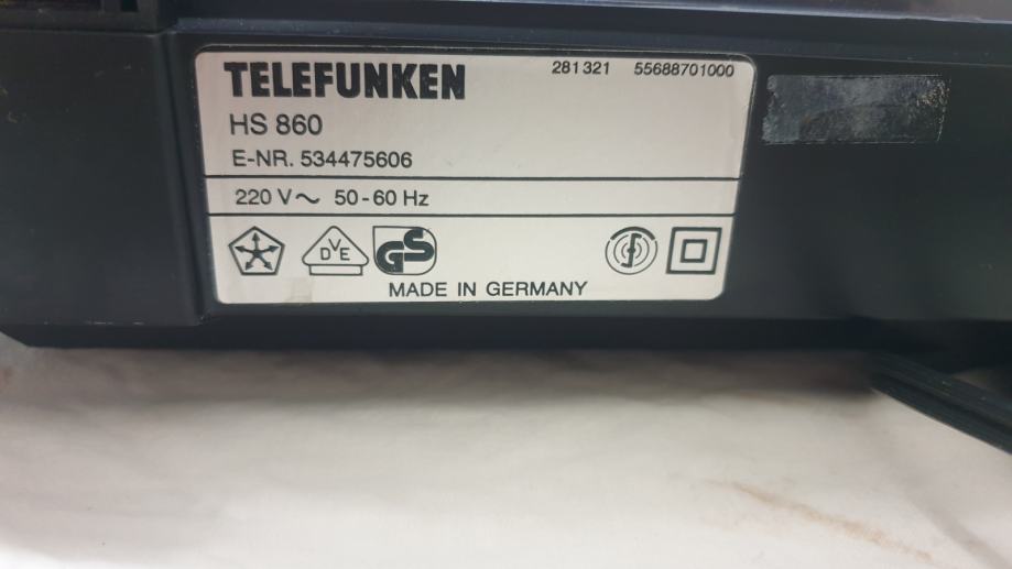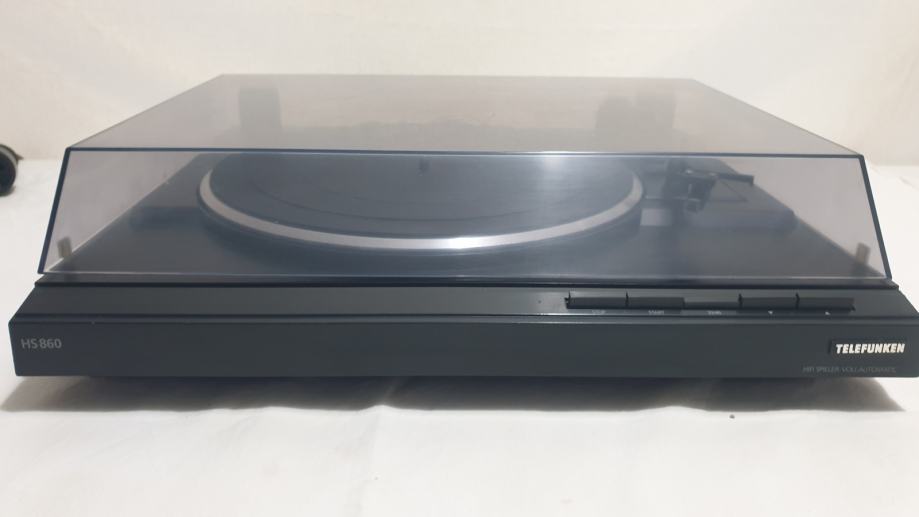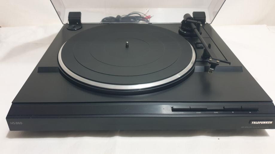 Telefunken HS-860 je Hi-Fi gramofon iz 1980-ih, dizajniran za ljubitelje vinila koji traže kvalitetnu i pouzdanu reprodukciju zvuka. Ovaj model spada u kategoriju poluautomatskih gramofona, što znači da se ručica automatski vraća nakon završetka reprodukcije, ali početno postavljanje igle na ploču je ručno. Njegova preciznost u očitavanju brazdi osigurava vjernu reprodukciju glazbe, a kvaliteta konstrukcije smanjuje šum i izobličenja. Telefunken HS-860 pruža topao, detaljan i prirodan zvuk. Telefunken HS-860 je gramofon za ljubitelje vintage Hi-Fi opreme, posebno za one koji cijene klasični analogni zvuk i pouzdanu mehaniku. Njegova kvaliteta izrade i performanse omogućuju uživanje u glazbi onako kako je snimljena. Gramofon je potpuno ispravan i funkcionalan, a vizualno se vide mali tragovi korištenja na zadnje 2 slike.
