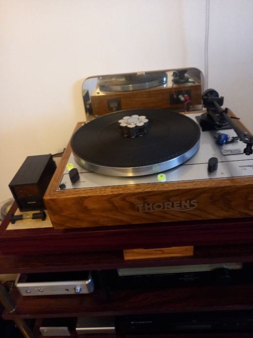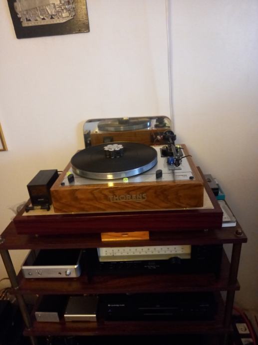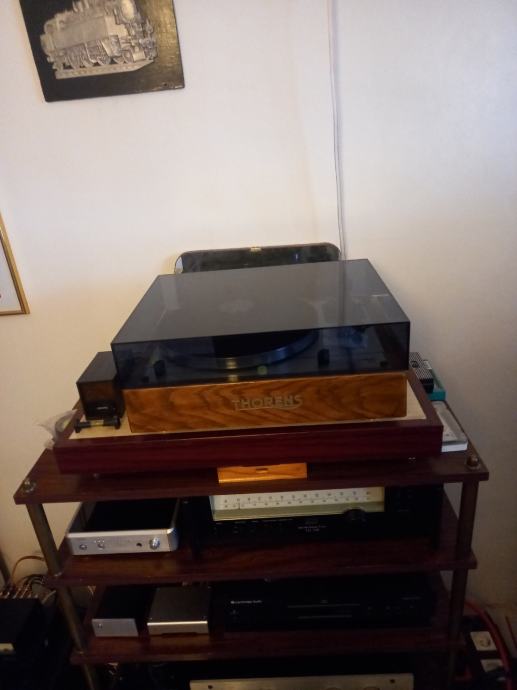 Gramofon Thorens TD 165 kompletno obnovljen.Hrastov plinth,ugradjen stabilizator vrtnje motora, aluminiski pulli, novi orginal Thorens remen(dajem i rezervni)strujno ozicenje Supra,phono Tasker,Iznutra izoliran plutom ,cincevi rodij,promijenjeno ulje. Rucka Linn basic sa Ortofon MC 10 Super zvuchicom,(mogućnost kupnje i Ortofon MC T-10 trafoa 150 eura), antivibraciski siljci , orginal Thorens clamp i Thorens cinc kabel. Uz njega ide i orginal Thorensova rucka sa svim pripadajucim dijelovima za montazu iste. Moguca kupnja bez zvucnice i utega za ploce. Cijena 750 eura.Molim bez zamijene,na poruke ne odgovaram.Tel.0915238349.