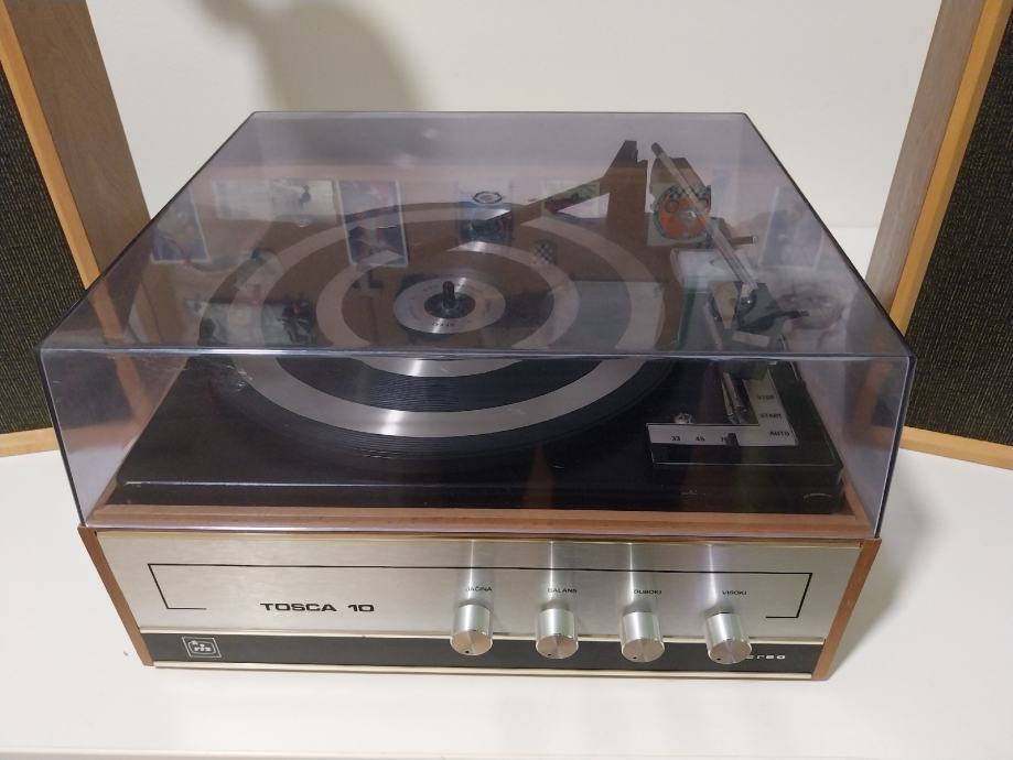 Prodajem gramofon RIZ-ELAK TOSCA 10. Gramofon je u odličnom stanju. Jako je očuvan. Ispravan je i kompletan. Ima lijep i ugodan zvuk. Stavljena je nova igla za vinilne ploče i nova igla za shellac ploče na 78 okretaja. Uz gramofon dolaze trokutići i okrugli crni nastavak za singl ploče, nastavak na koji se stave singl ploče pa može svirati kao jukebox, nova igla za vinilne ploče i nova igla za shellac ploče. Cijena je 250 eura i nije fiksna za ozbiljnog kupca. Zainteresiranima šaljem dodatne fotografije i videozapis gramofona kako radi. Može se pogledati svaki dan po dogovoru. Nazvati na 0993396111