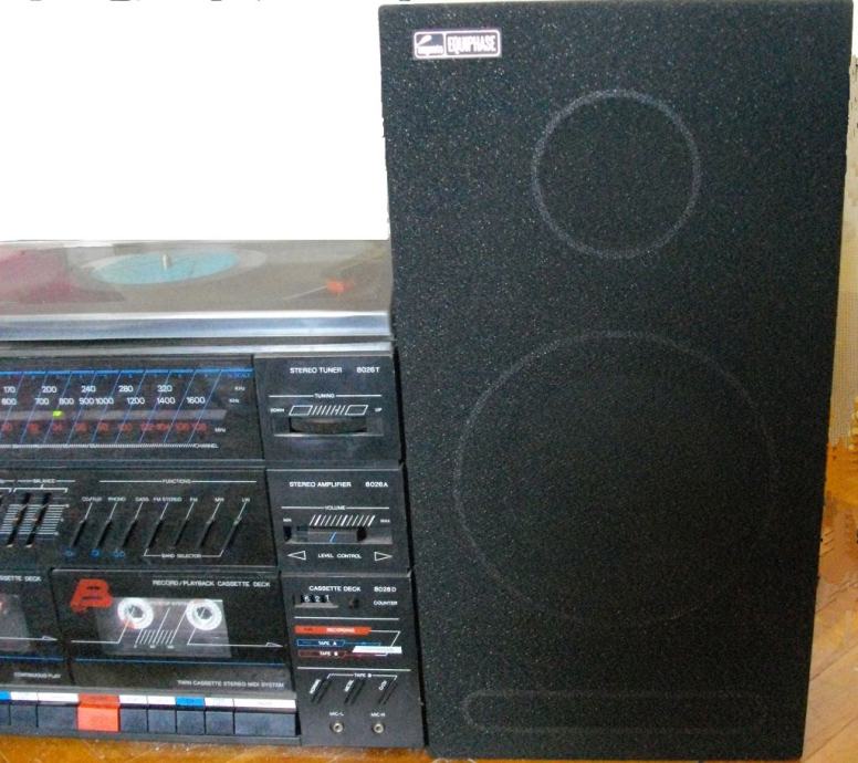 Gramofon sa drvenim zvučnicima veličine 44x23x19cm. Ugrađen gramofon, radio, kazetofon dupli ekvilajzer 4 ulaza. Dimenzije linije 32x23x19cm. Sve radi odlično i ima sve kablove. prodajem ili mjenjam za Filipsov cd