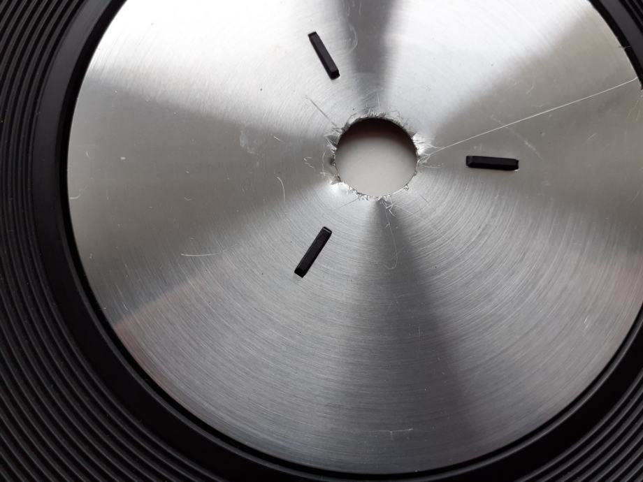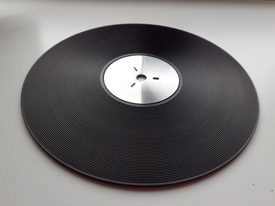 Čitav je, bez rezova i pukotina. Pripadao je gramofonu Dual 1010, ali sigurno odgovara tanjurima mnogih drugih Dualovih gramofona, kao što su 1224, 1226, 1228, zatim Perpetuum Ebner PE 3044, PE 3046 i Telefunken TW 268 Hi Fi. Vanjski promjer mu je 266 mm, visina/debljina 3.75 mm, a masa 143 gram.