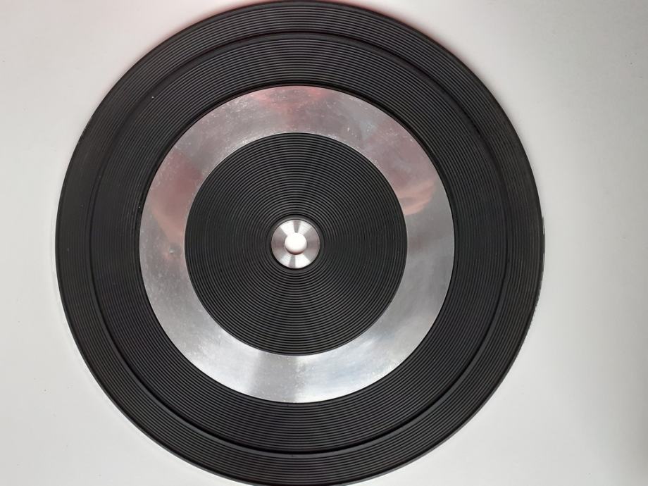 Čitav je, bez rezova i pukotina. Prsten nije zalijepljen za gumu. Pripadao je gramofonu Dual 1210, ali sigurno odgovara tanjurima mnogih drugih Dualovih gramofona, kao što su npr. 1010, 1224, 1225, 1226, 1228, zatim Perpetuum Ebner PE 3044, PE 3046 i Telefunken TW 268 Hi Fi. Vanjski promjer mu je 265 mm.