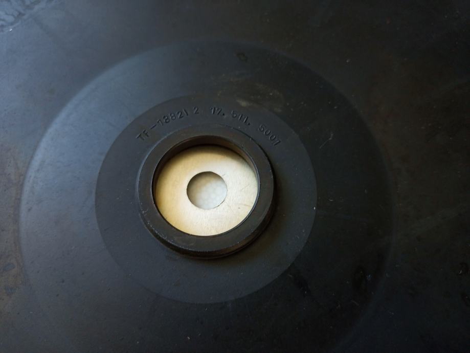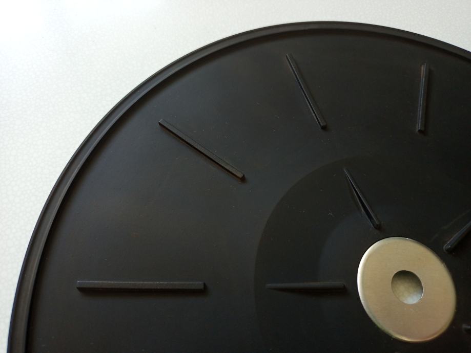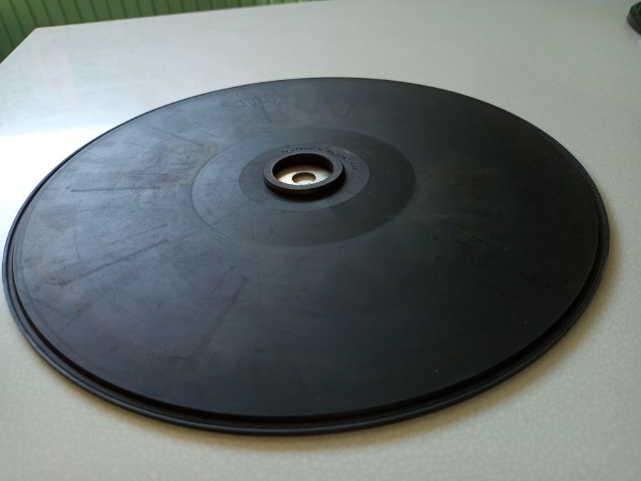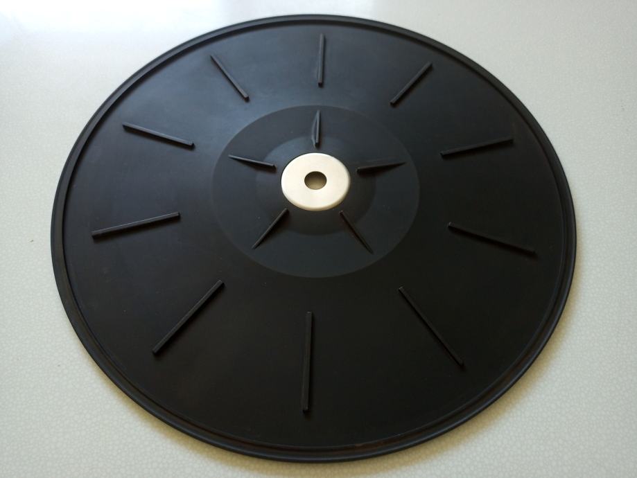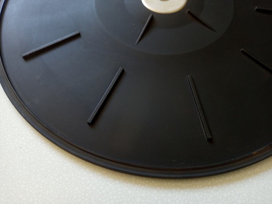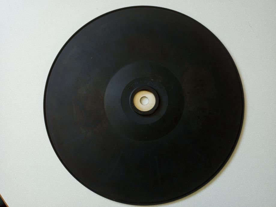 Čitav je, bez rezova i pukotina. Pripadao je gramofonskoj jedinici Elac 819, koja je pod imenom ELAK AS 206 bila sastavni dio gramofona RIZ ELAK GM 7601. Vanjski promjer mu je 255 mm.