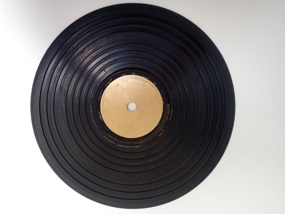 Čitav je, bez rezova i pukotina. Pripadao je gramofonu Perpetuum Ebner PE 3040. Vanjski promjer mu je 262 mm, debljina ruba 3.15 mm, a masa 138 grama.