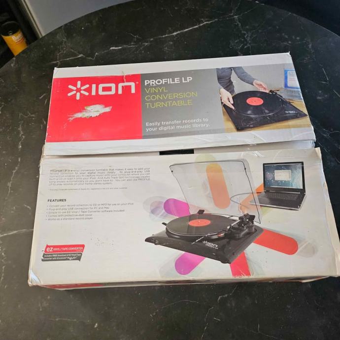 Na prodaju ' Ion profile LP ' gramofon. Za one koji tek otkrivaju svijet gramofonskih ploča, ili one koji sa svoje kolekcije vinila žele konvertirati i prebaciti pjesme na ' MP3' ovo je prava prilika za vas.Gramofon se putem RCA kablova može spojiti na svaki receiver ili pojačalo. Par puta korišten i u svojoj orginalnoj ambalaži, solidan zvuk i kvaliteta, idealno za poklon sebi ili nekome u nadolazečim praznicima. Cijena 100 € plus poštarina. U Istri moguča primopredaja na ruke