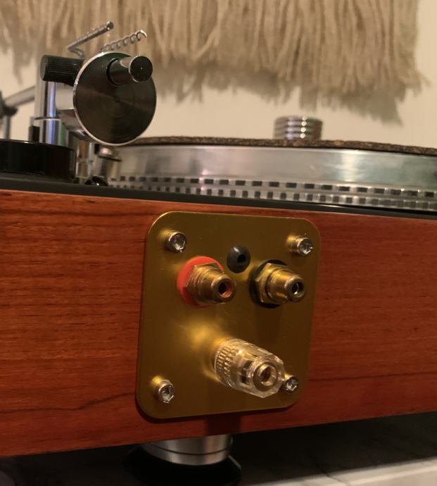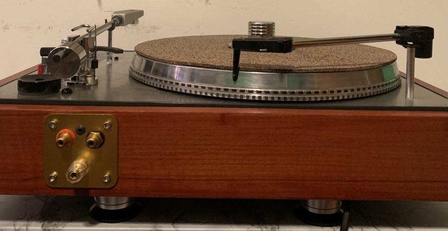 Gramofon je kompletno servisiran, stavljen novi remen, plinth dodatno ojacan, podnica izradjena od HDF-a, kompletno oblozen bitumenskim antivibracijskim plocama, ugradjen stroboskop, novi tanjur izradjen sendvic tehnologijom, guma-pluto mat, balansirani tanjur, Cardas ozicenje kroz rucku, Cardas RCA konektori i GND konektor na kucistu, clamp, ugradjen mrezni filter, kompletno obnovljena elektronika, antirezonantne nozice…