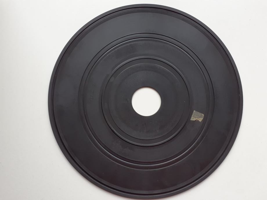 Čitav je, bez rezova i pukotina. Pripadao je gramofonu Dual 1254, a sigurno odgovara tanjurima drugih Dualovih gramofona, kao što su npr. 1256, 1257, 1258. Vanjski promjer mu je 249 mm, a promjer rupe 38.5 mm.