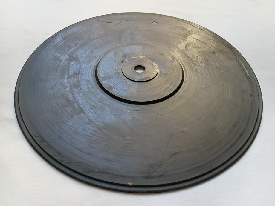 Čitav je, bez rezova i pukotina. Pripadao je gramofonu Dual 1225, ali sigurno odgovara tanjurima drugih Dualovih gramofona, kao što su npr. 1239, 1224, 1226, 1228 i 1239 G. Vanjski promjer mu je 262 mm.