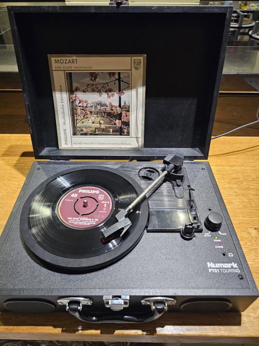 Prodajem Numark PT01 Touring prijenosni gramofon u odličnom stanju, idealan za ljubitelje vinila u pokretu. Kompaktan i praktičan dizajn u kovčegu omogućuje lako prenošenje i zaštitu uređaja. Napanje preko USB.
