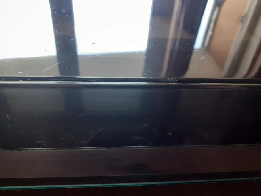 Vanjske mjere su 410, 346 i 50 mm. Fotografije uz oglas prikazuju ovdje oglašeni predmet. Čitav je, bez pukotina, sa mnogim ogrebotinama. Treba uzeti u obzir da je za vrijeme fotografiranja poklopac stavljen u položaj između kamere i prozora, da bi sva oštećenja bila uočljivija, tj. da budući vlasnik ne bi bio razočaran stanjem kupljenog predmeta. Izgleda mnogo bolje na gramofonu postavljenom na polici uza zid, tj. u uobičajenim uvjetima osvjetljenja.