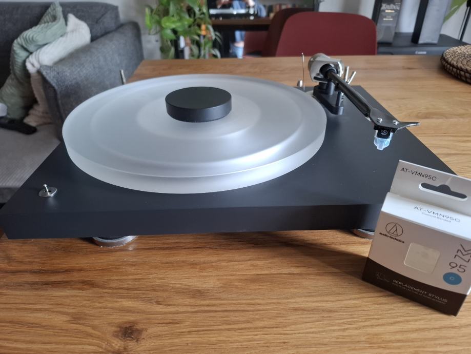 Gramofon dolazi sa poboljšanim aluminijskim sub platterom, akrilnim tanjurom, utegom za ploče i novom Audio Technica VM95C zvučnicom. Posjedujem originalnu ambalažu.