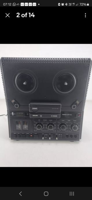 Magnetofon Philips N4512 hifi sa sa maga conttrol funkcijom koja ostvaruje snimanje i reprodukciju do 30ips, standardni magnetofoni dostiže 15ips, servisiran, sa tri motora, tri glave ,tri brzine. Magnetofon je sačuvan, ima originalnu zaštitu od prašine. Uz magnetofon ide originalna traka, rezervna nova glava za reprodukciju, remen. Kupac može dogovoriti način testiranja uređaja.