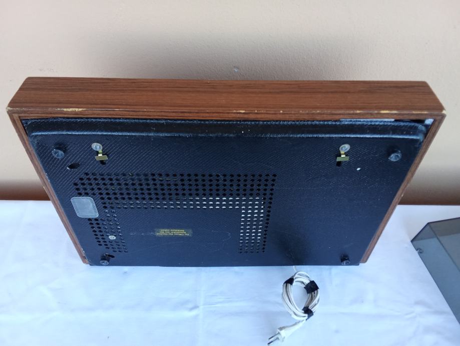 Slomljen je gumb za paljenje i gašenje uređaja pa se pali i gasi tako da se sklopka pogura štapićastim predmetom (npr. flomasterom) ili se jednostavno pogura malim prstom. Sve ostalo na uređaju je čitavo i potpuno ispravno. Uredno proizvodi zvuk, kako sa gramofonskih ploča, tako i sa vanjskih uređaja koji su priključeni na njega. Zvučnica je keramička, igla ima kristalni vrh, obje su vrlo vjerojatno ugrađene još u tvornici i vrlo vjerojatno su iste marke kao i uređaj. Fotografije priložene uz oglas prikazuju ovdje oglašeni uređaj. Navedena cijena je fiksna, ali može biti 10 € niža u slučaju osobnog preuzimanja, pod uvjetom da mi se kupac maksimalno prilagodi glede vremena i mjesta kupnje i da samo uzme uređaj bez provjere ispravnosti.