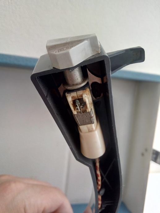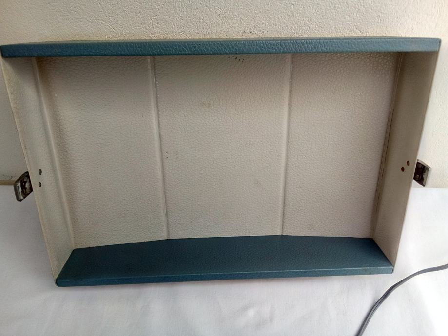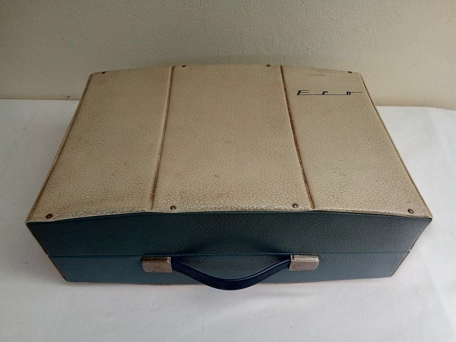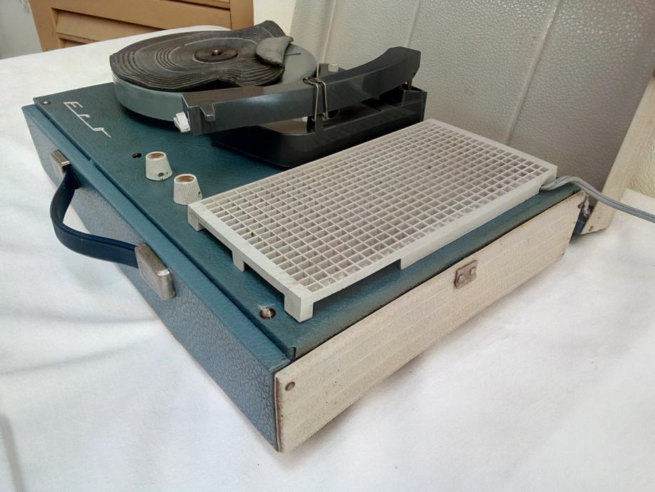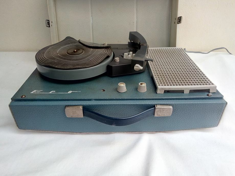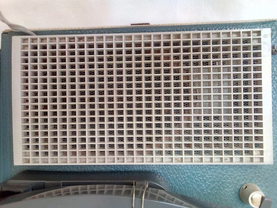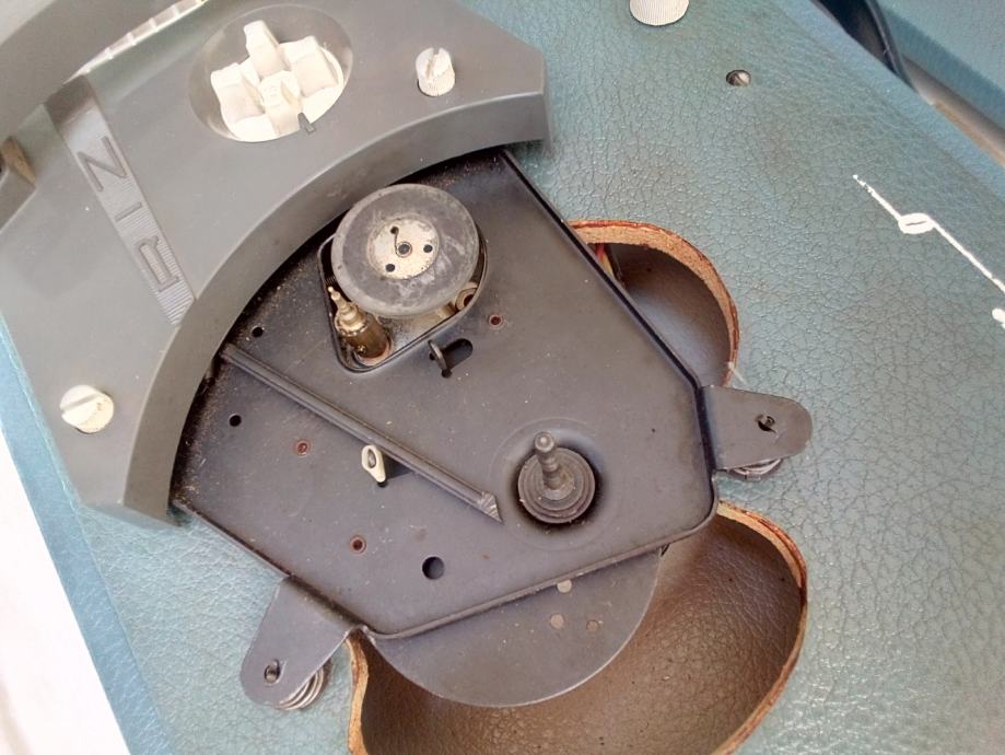 Ne radi, jer mu je vrlo vjerojatno pregorio mrežni kondenzator, a to mislim jer sam ga htio provjeriti, radio je par minuta, dok se nije ukazao dim iz njega, uz tihi zvuk pucketanja. Zato nisam stigao ništa drugo provjerit na njemu. Zvučnica je dvostrana, marke Ronnette, a fali jedna igla. Tarenica (idler wheel) je čitava, bez pukotina, ali kruta i vrlo vjerojatno lomljiva.