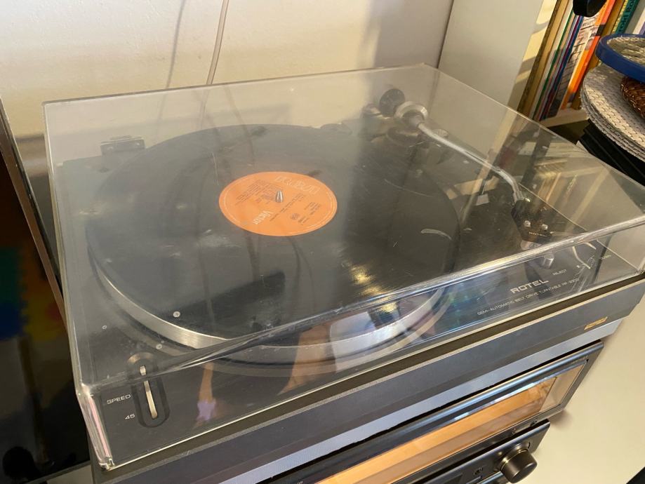 Na poklopcu vidljivi tragovi godina ali sve radi kako treba , kada završi zadnja pjesma vrača ručku u početni položaj i gasi gramofon