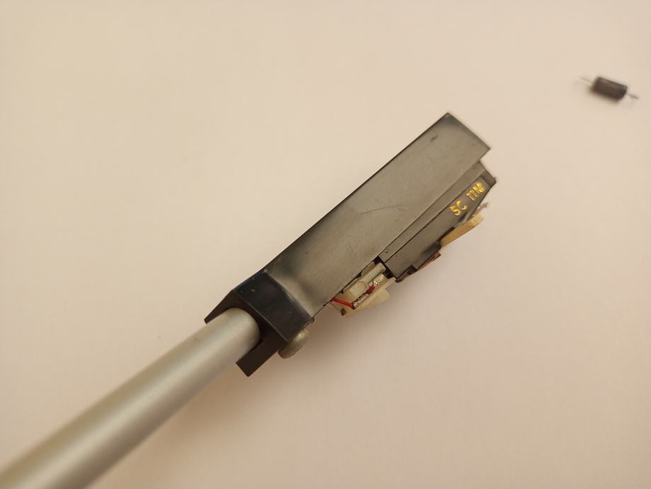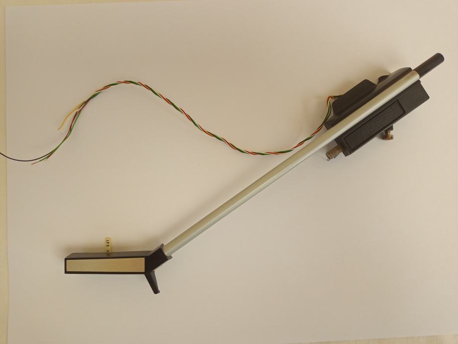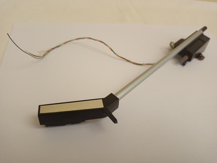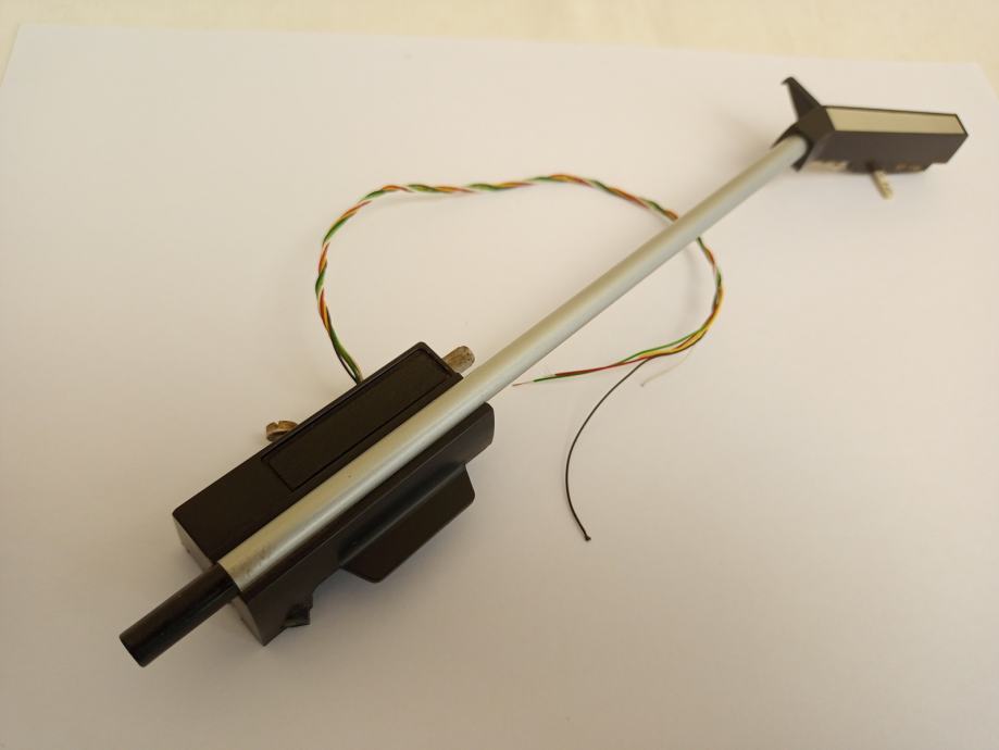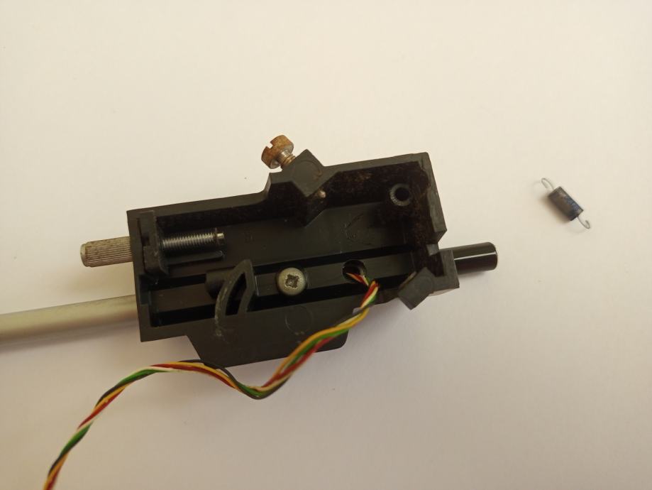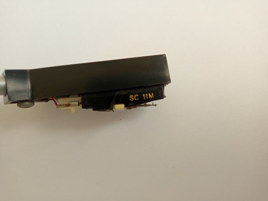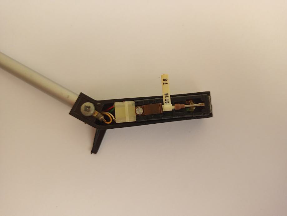 Prodajem čitavu ručku koja je pripadala gramofonskoj jedinici BSR C129R2, sa ispravnom zvučnicom BSR SC11M i ispravnom iglom BSR ST 16. Identične ručke su na gramofonskim jedinicama BSR C123R2 koje su bile sastavni dio uređaja RIZ-ELAK Tosca 20 GP 5660. Na predmetu nema pukotina, ali postoje neupadljiva površinska oštećenja i površinske tvorničke nesavršenosti.