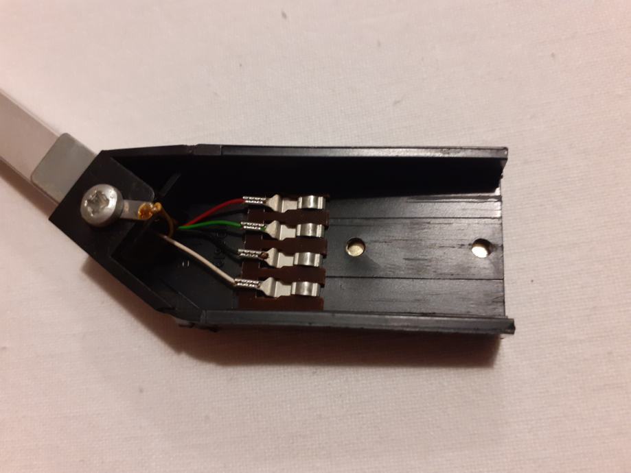 Prodajem ručku koja je pripadala gramofonskoj jedinici BSR C128R, koja je bila sastavni dio uređaja RIZ-ELAK Tosca hi fi. Fotografije priložene uz oglas prikazuju ovdje oglašeni predmet. Kao što se vidi, na stražnjem kraju ručke nedostaje uteg, a na prednjem tzv. headshell adapter i na tzv. headshellu je slomljena ručica pomoću koje se ručka ručno polaže na ploču.
