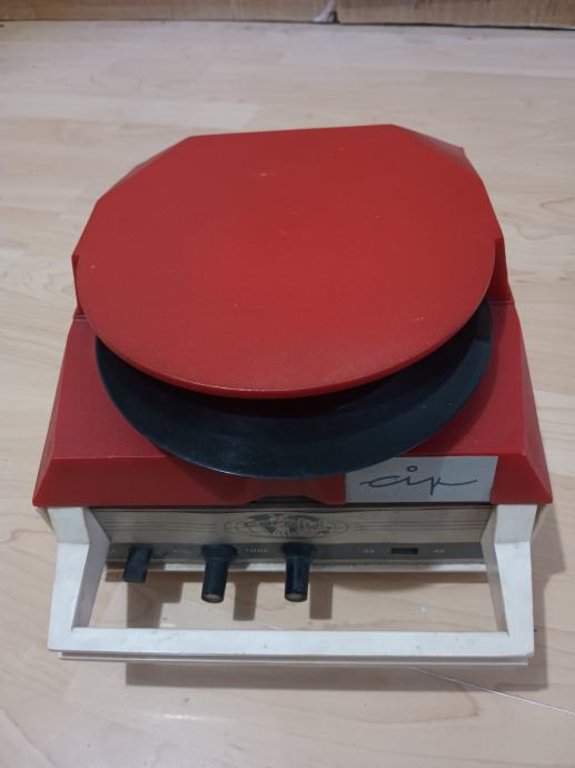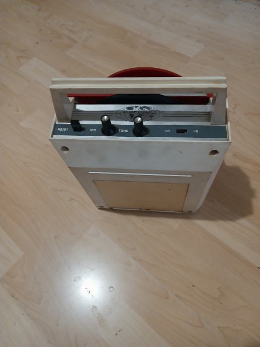 Prodajem gramofon u ispravnom stanju iz 1959.godine, radi na principu ubacivanja ploča u njega (Juke-box) a iznad se nalaze ploče singlice. Radi preko ispravljača a isto tako i na baterije,potpuno ispravan,uz njega ide 12. ploča u kompletu koje se nalaze u spremištu iznad gramofona,jako rijedak primjerak u savršenom stanju. Ne šaljem poštom, preuzimanje je osobno nakon pregleda i provjere ispravnosti gramofona, cijena za cijeli komplet - gramofon+ispravljač+12.ploča je ukupno 99.Eura, mogućnost dostave na autocestu -naplatne kućice u Karlovcu.