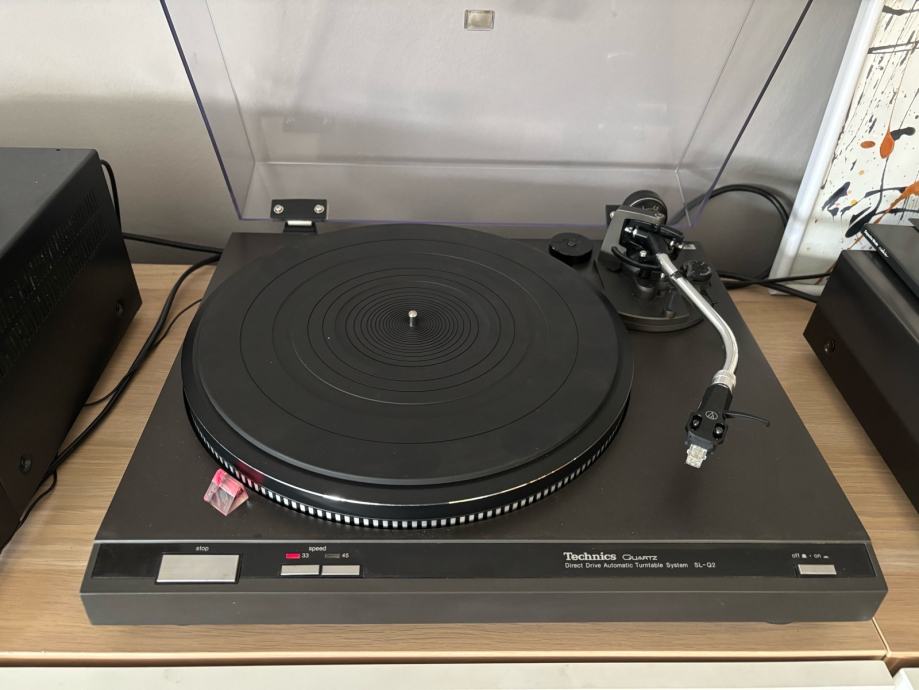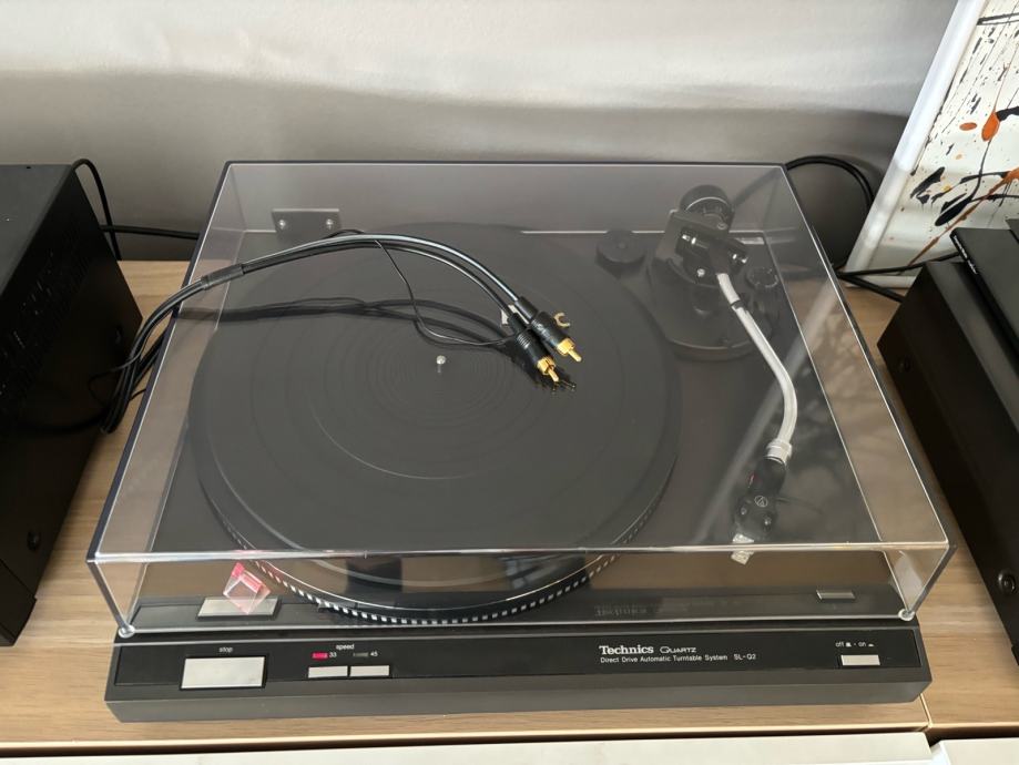 Technics SL-Q2 gramofon Direct-Drive u odličnom tehničkom i vizualnom stanju. Gramofon je u potpunosti servisiran, stari interkonekti su zamijenjeni visokokvalitetnim kablovima. Svi mehanizmi rade savršeno. Poklopac je u vrlo dobrom stanju s novim držačima. Na gramofon je postavljena cijenjena Empire BC100 broadcast zvučnica s novom iglom, poznata po toplom i dinamičnom zvuku.