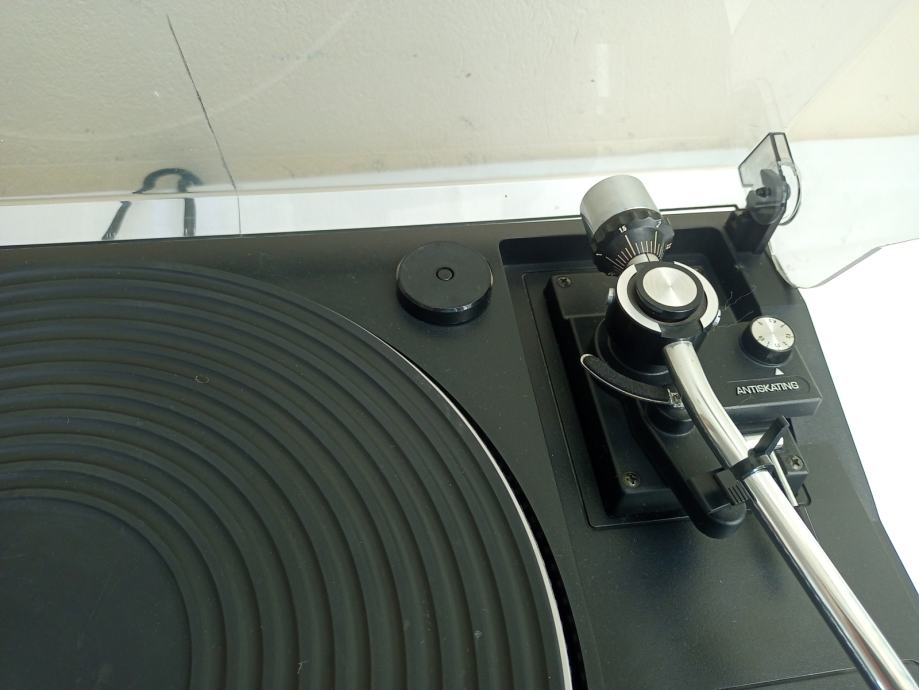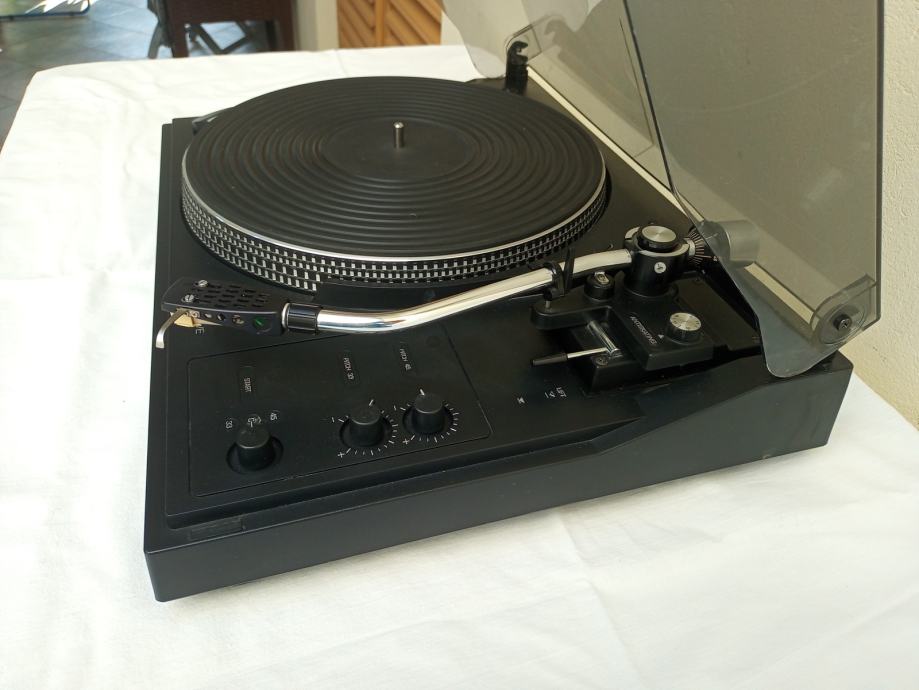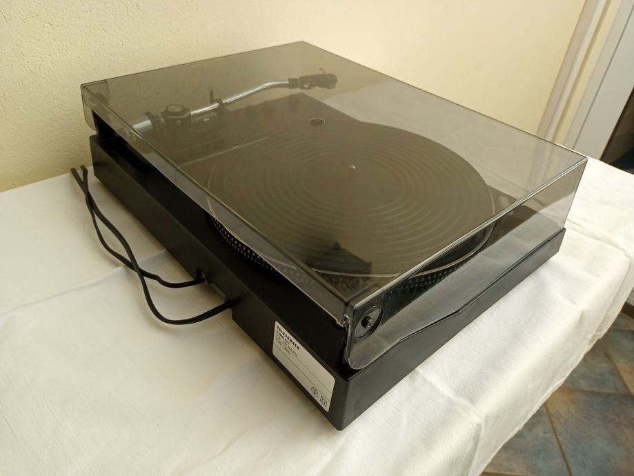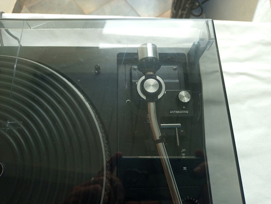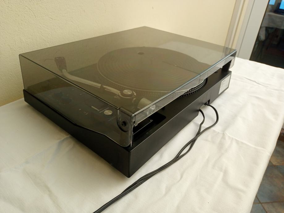 Upotrebljiv je, a mnogi će ga i nakon čitanja opisa u nastavku oglasa smatrati i ispravnim. Sve što nije spomenuto u nastavku smatrajte potpuno ispravnim. Uteg je ili zalijepljen za ručku ili je njegova dodirna površina sa ručkom zapečena. Na donjoj strani headshella je zalijepljena kovanica, sa kojom se postiže gazna sila igle na ploču ekvivalentna masi od 1.5 grama. Dakle, gazna sila igle na ploči može se podešavati isključivo dodavanjem nekih sitnih predmeta na jednom ili drugom kraju ručke. Ovo je potpuno manualni gramofon, bez mehanizma automatike, tako je proizveden. Vrtna tanjura počinje tako da se sklopka "33-0-45" iz položaja "0" postavi ili u položaj "33" ili u položaj "45", ovisno o tome da li se tanjur treba vrtjeti brzinom od 33 ili od 45 okretaja u minuti. Vrtnja tanjura bi trebala prestati kada se ta sklopka vrati u položaj "0", ali to se ne događa pa je zbog toga u stražnjem lijevom kutu gornje plohe kućišta ugrađen prekidač napajanja, pomoću kojeg se prekida ili postiže dovod struje u uređaj. Spojevi poklopca sa pantima su preinačeni, sada ga sa pantima povezuju obični crni vijci. Igla i zvučnica koje vidite na fotografijama su prodane, a, po dogovoru sa kupcem mogu postaviti neki drugi komplet kojeg trenutno imaml.