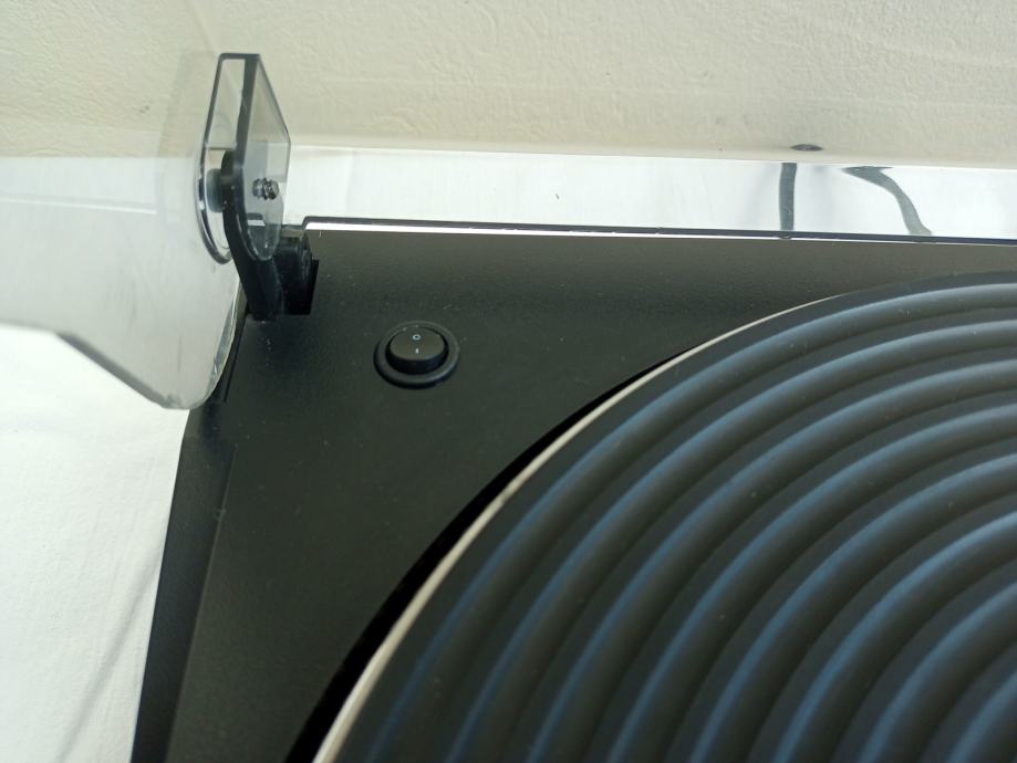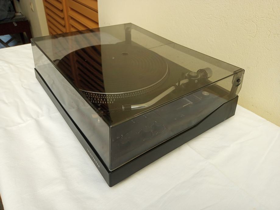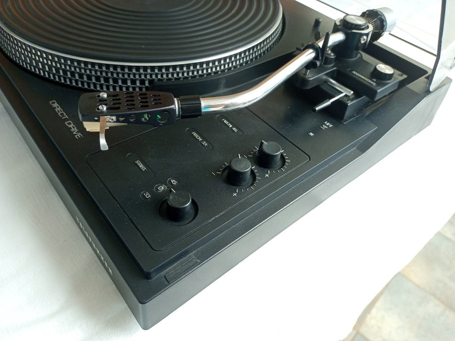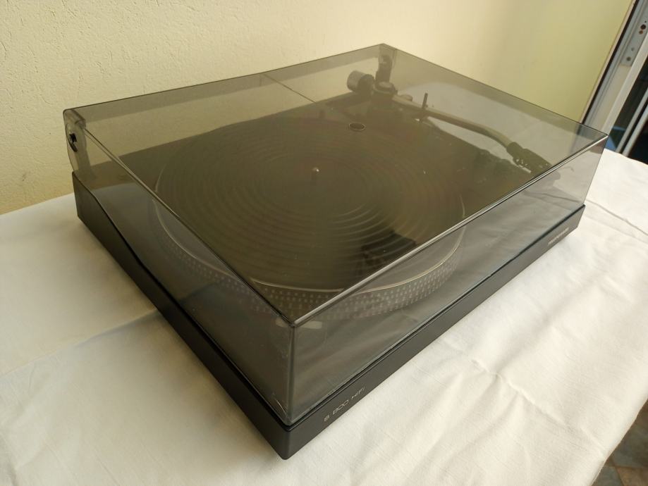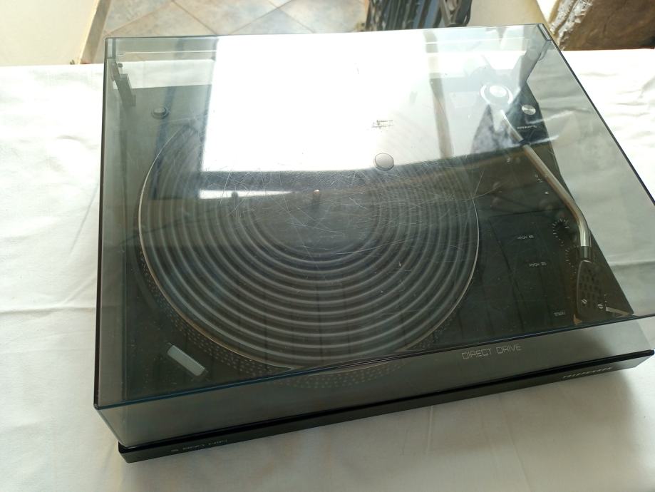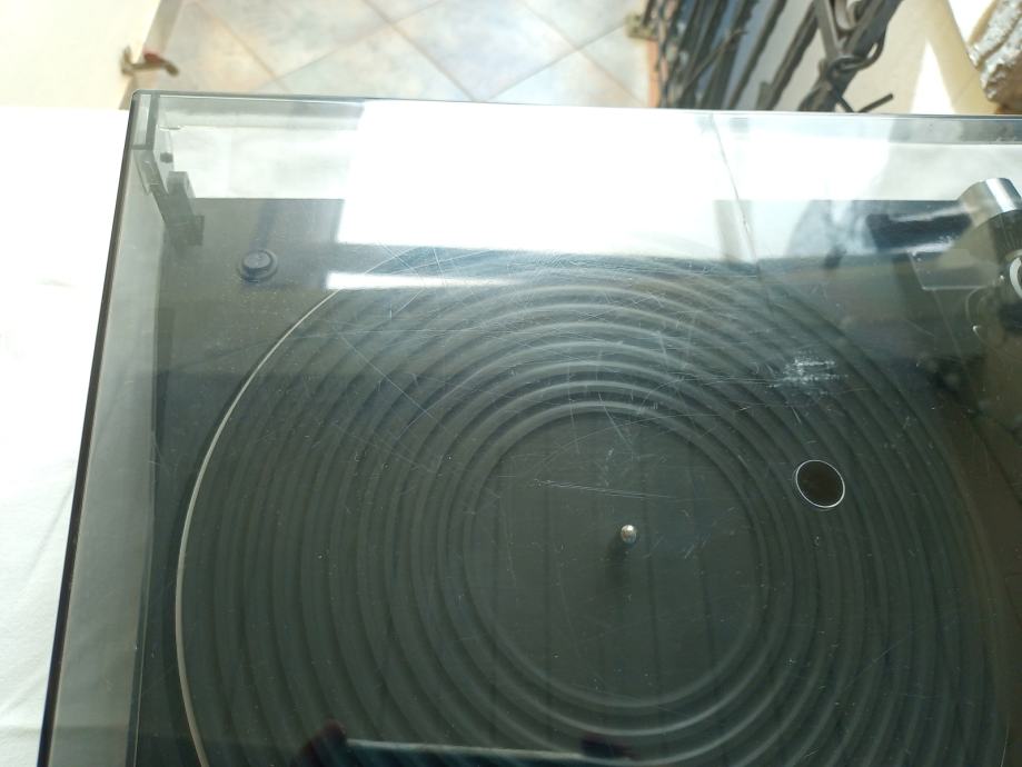Upotrebljiv je, a mnogi će ga i nakon čitanja opisa u nastavku oglasa smatrati i ispravnim. Sve što nije spomenuto u nastavku smatrajte potpuno ispravnim. Uteg je ili zalijepljen za ručku ili je njegova dodirna površina sa ručkom zapečena. Na donjoj strani headshella je zalijepljena kovanica, sa kojom se postiže gazna sila igle na ploču ekvivalentna masi od 1.5 grama. Dakle, gazna sila igle na ploči može se podešavati isključivo dodavanjem nekih sitnih predmeta na jednom ili drugom kraju ručke. Ovo je potpuno manualni gramofon, bez mehanizma automatike, tako je proizveden. Vrtna tanjura počinje tako da se sklopka "33-0-45" iz položaja "0" postavi ili u položaj "33" ili u položaj "45", ovisno o tome da li se tanjur treba vrtjeti brzinom od 33 ili od 45 okretaja u minuti. Vrtnja tanjura bi trebala prestati kada se ta sklopka vrati u položaj "0", ali to se ne događa pa je zbog toga u stražnjem lijevom kutu gornje plohe kućišta ugrađen prekidač napajanja, pomoću kojeg se prekida ili postiže dovod struje u uređaj. Spojevi poklopca sa pantima su preinačeni, sada ga sa pantima povezuju obični crni vijci. Igla i zvučnica koje vidite na fotografijama su prodane, a, po dogovoru sa kupcem mogu postaviti neki drugi komplet kojeg trenutno imaml.