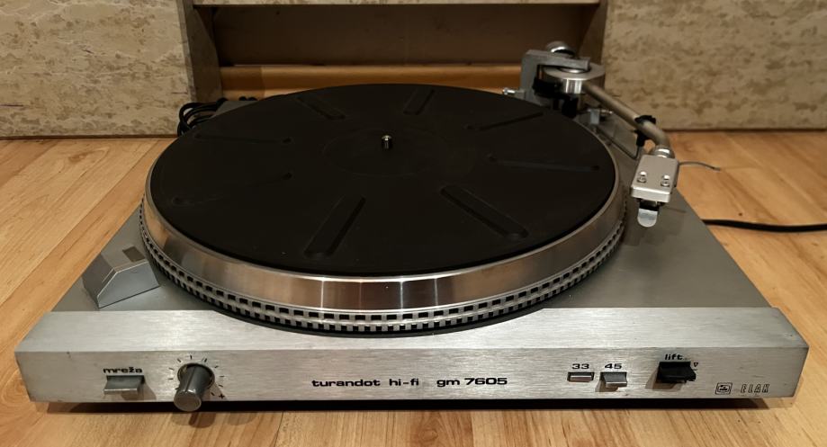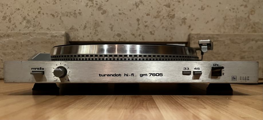Gramofon Turandot GM 7605, masivno drveno kuciste ojacano aluminijskim profilima, poluautomatski, belt drive, kompletno servisiran