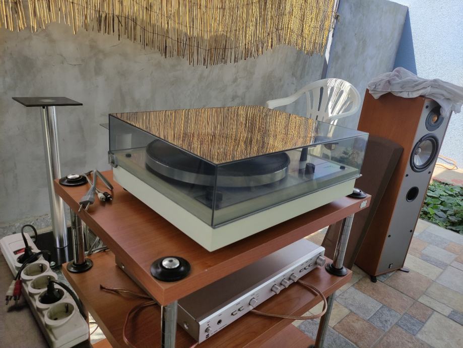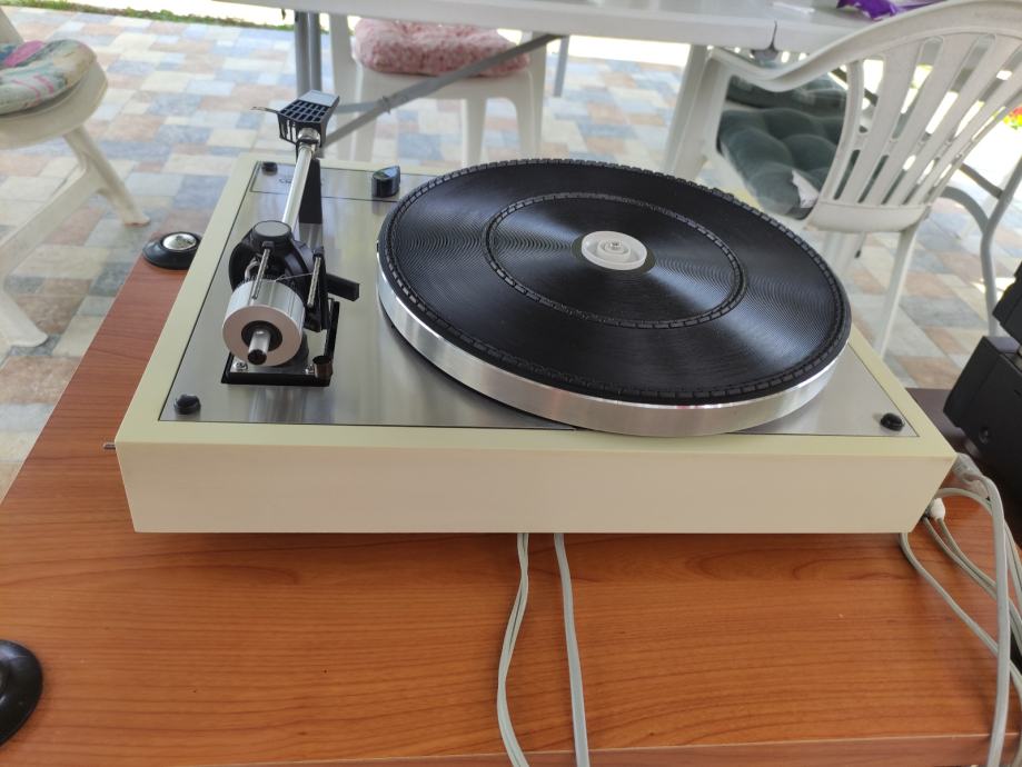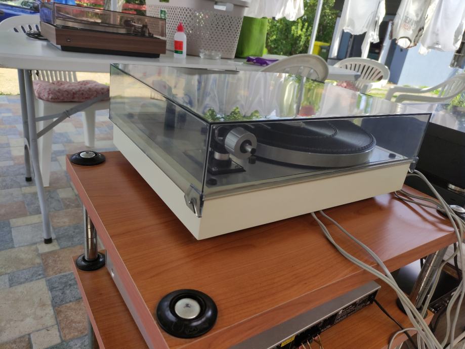 Potpuno ispravan gramofon na remenski pogon s originalnom zvučnicom i iglom AT u odličnom stanju. Težina oko 8 kilograma. Made in Germany. FIKSNA cijena, bez zamjene. 098 979 8021.