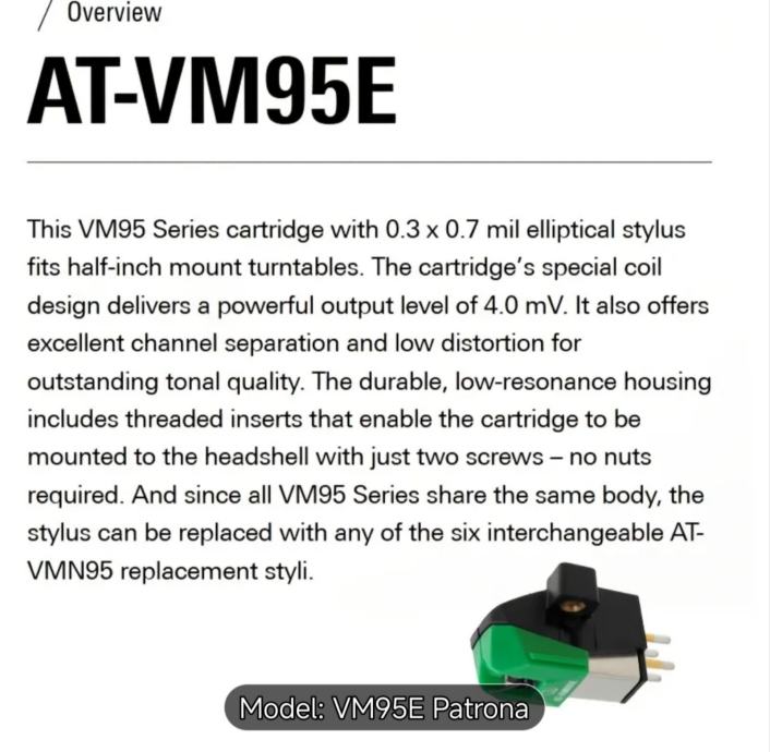 Prodajem novu zvučnicu Audio-Technica AT-VM95E, dual moving magnet uložak namijenjen gramofonima s polu-inčnim montažnim sustavom.